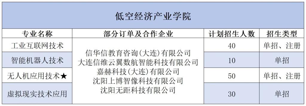 学院紧扣国家低空经济发展战略,聚焦低空产业岗位需求,锚定无人机低空作业与城市空管核心赛道,着力打造国家级产教融合高地。开设无人机应用技术、工业互联网技术、智能机器人技术和虚拟现实技术应用四大专业。学院配备设备全覆盖的专业化实训平台,构建“室内模拟+室外实景”双轨实训模式;同时设有无人机研发中心、维修中心等实训工坊,实施“学-仿-练”一体化培养模式,实现“毕业即就业”的无缝对接,为东北低空产业发展提供人才支撑与技术赋能。
