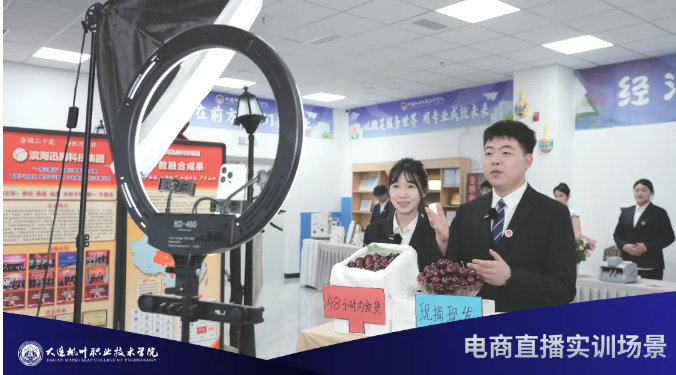 学院锚定数字经济新蓝海,以数字媒体技术、电子商务、跨境电子商务三大王牌专业为引擎,组建“双高”专业群。创新打造“1个产教融合示范基地+3大技术协同创新基地+N家头部企业“实体化运营生态,建成500㎡沉浸式电商孵化基地,搭载8K VR全景直播间、AI虚拟主播系统、大数据选品中枢等尖端媒体装备,让教育链与产业链同频共振。学生在这里“真刀真枪”直播带货,企业导师与校内“双导师”同屏指导,实时承接品牌外包项目,流量、销量、教学量同步飙升。学院持续输出掌握 AIGC内容生产、数字人运营、跨境直播新玩法的高素质数字经济人才,为区域经济注入澎湃“数智”动能。