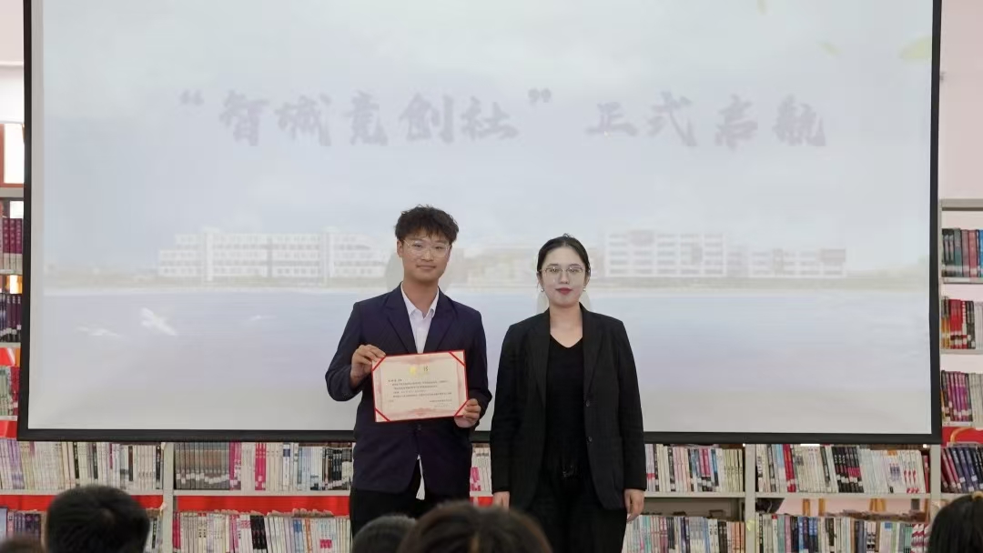 大会核心环节——成立“智城竞创社”。区别于传统兴趣社团,该社定位“职业教育综合育人平台”,以“跨专业组队、岗课赛证贯通、企业导师赋能”为核心,搭建课堂到岗位、技能到竞赛的全周期成长通道。社团面向全校开放,设跨专业项目组,通过“基础培训—模拟实战—企业跟岗—竞赛冲刺”四阶体系,助力多维成长。辛赏月院长为社团导师颁发聘书时指出,社团将成“岗课赛证”融合试验田,推课程对接岗位、竞赛反哺教学、证书检验成果。目前已与3家头部企业合作,未来将引入真实案例进课堂、组织跟岗实践,促进“学中赛、赛中岗、岗证通”。