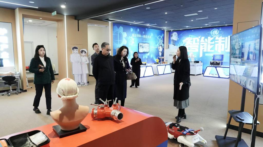 考察期间,马博文会长一行首先实地走访了各产业学院,深入了解各学院专业建设、教学实训及产业对接情况。在参观中华职业教育社社史馆时,考察团对我院将AI技术与教育教学、产业实践深度融合的创新模式给予高度认可,认为此举有效提升了人才培养的精准度与前瞻性。