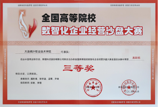 在激烈的竞赛中,我校参赛团队凭借扎实的专业知识、出色的团队协作能力和敏锐的数智化经营思维,沉着应对挑战,精准决策布局,最终从众多强劲对手中脱颖而出,斩获全国三等奖。
