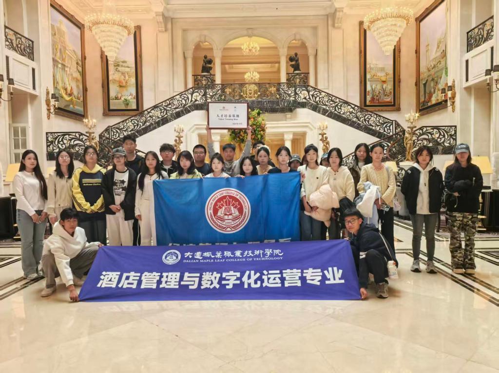 近日,枫叶职院经济管理与服务系组织酒店管理与数字化运营专业学生前往大连君悦酒店与大连城堡豪华精选酒店开展实践教学活动。此次活动既是 25 级学生的 “专业认知第一课”,也为 24 级学生搭建实习对接桥梁,更以高频互动深化校企合作,彰显产教融合育人成效。