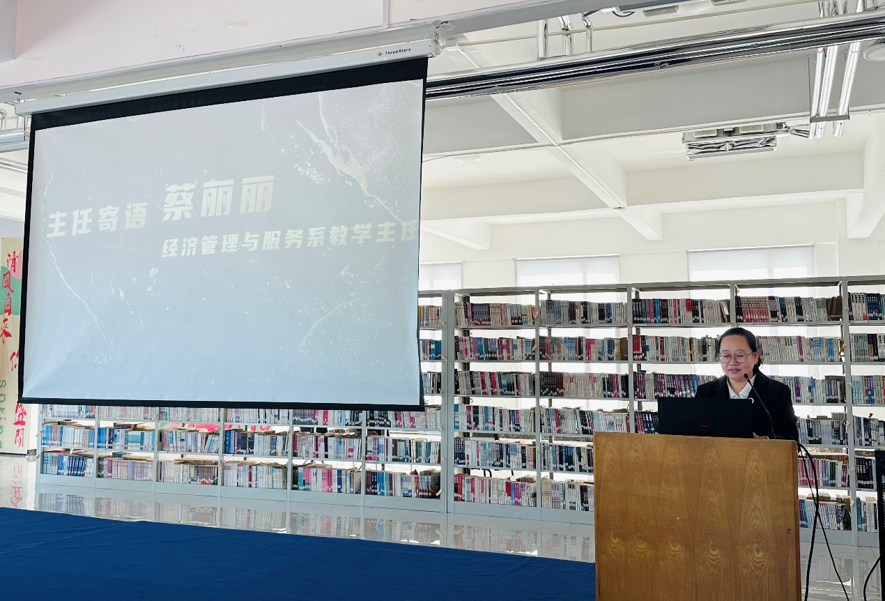 仪式在热烈的掌声中正式开始。经济管理服务系教学主任蔡丽丽首先代表系部致辞。蔡主任在讲话中深刻阐述了专升本教育的重要意义,并对同学们提出了明确的学习要求和发展期望。她强调,同学们要尽快适应本科阶段的学习节奏,夯实专业基础,提升实践能力,为未来的职业发展做好充分准备。