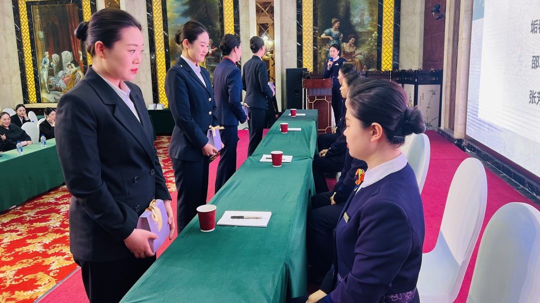 进入拜师仪式的核心环节。沈阳铁路局精心挑选的资深乘务人员、业务骨干作为师傅们依次上台,与各自的徒弟面对面站立。徒弟们怀着崇敬之情,向师傅们敬献 “拜师茶”,并郑重地签署师徒协议。这一传统而庄重的仪式,不仅是对师徒关系的正式确立,更象征着铁路行业精神与技艺的传承。