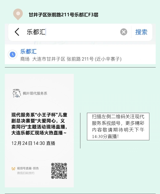 儿童剧表演带领小朋友们在生动有趣的故事情节里,感受真善美的力量,发现更广阔的世界。12月24日14:30分现代服务系婴幼儿托育服务与管理专业将在大连乐都汇带领小朋们在暖阳中播下一颗颗爱的小种子,开出最美的花!