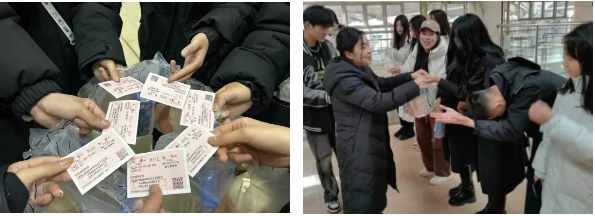 刘璐老师暖心为同学们分发小零食