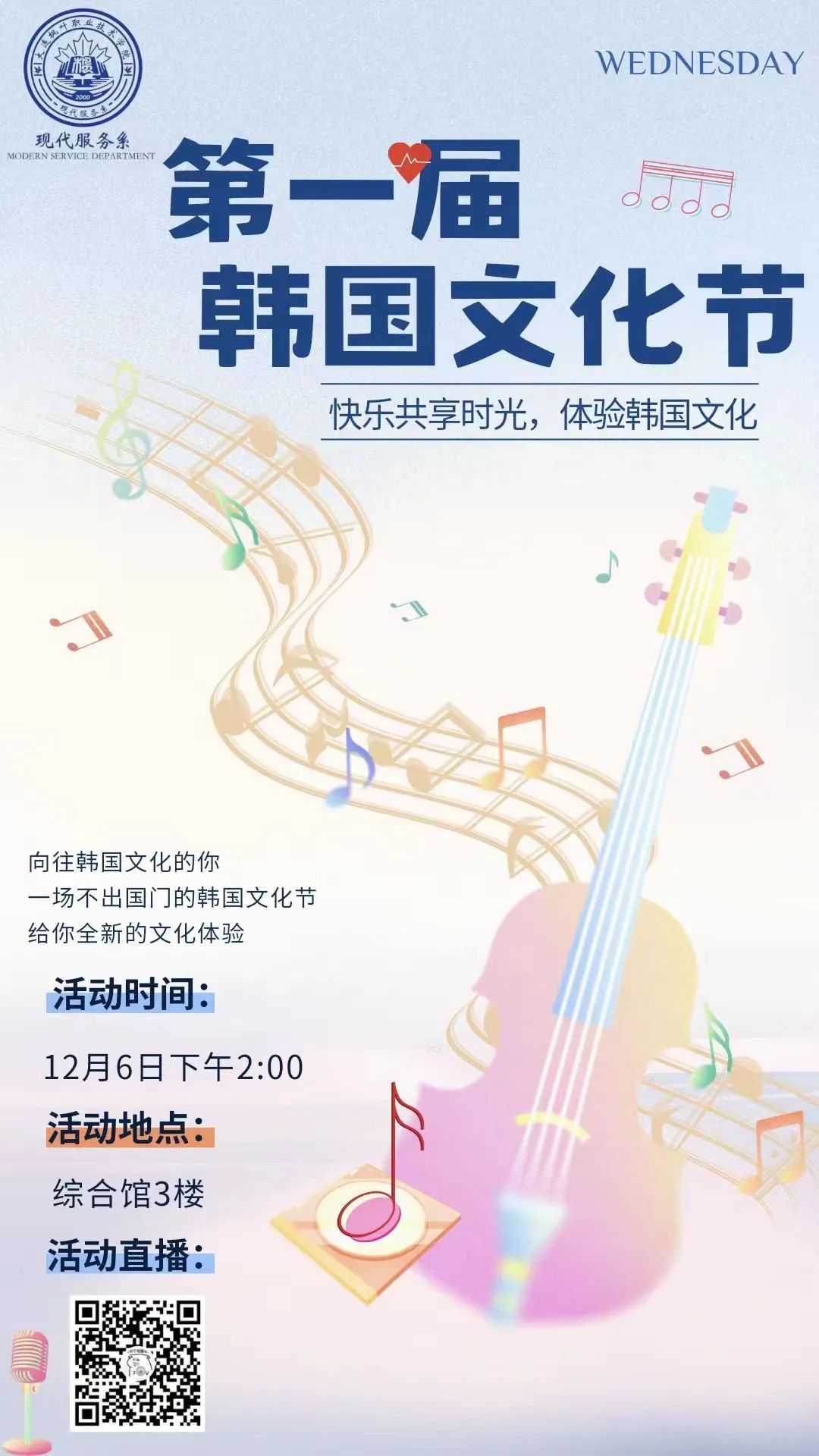 预祝大连枫叶职业技术学院现代服务系第一届“韩国文化节”圆满成功。亲爱的小叶子,明日下午两点综合馆3楼,不见不散!
