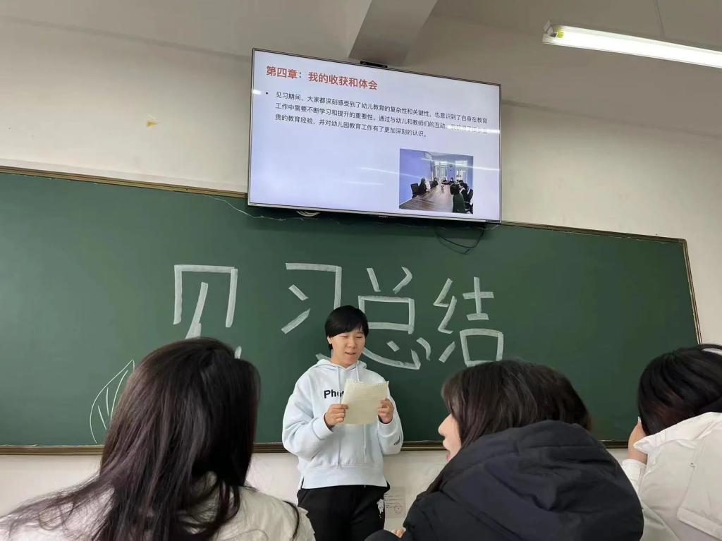 现代服务系教师刘金对同学们的一周见习进行了总结和评价。她表示,同学们在实习期间表现出了良好的工作态度和专业技能,也为同学们送上了自己的祝福,希望她们在今后的工作中发挥自己的光和热,勇往直前,将来做一名有爱心有温暖的老师。