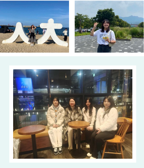 都文丽(左一)正与23级部分赴韩研学同学进行交流。