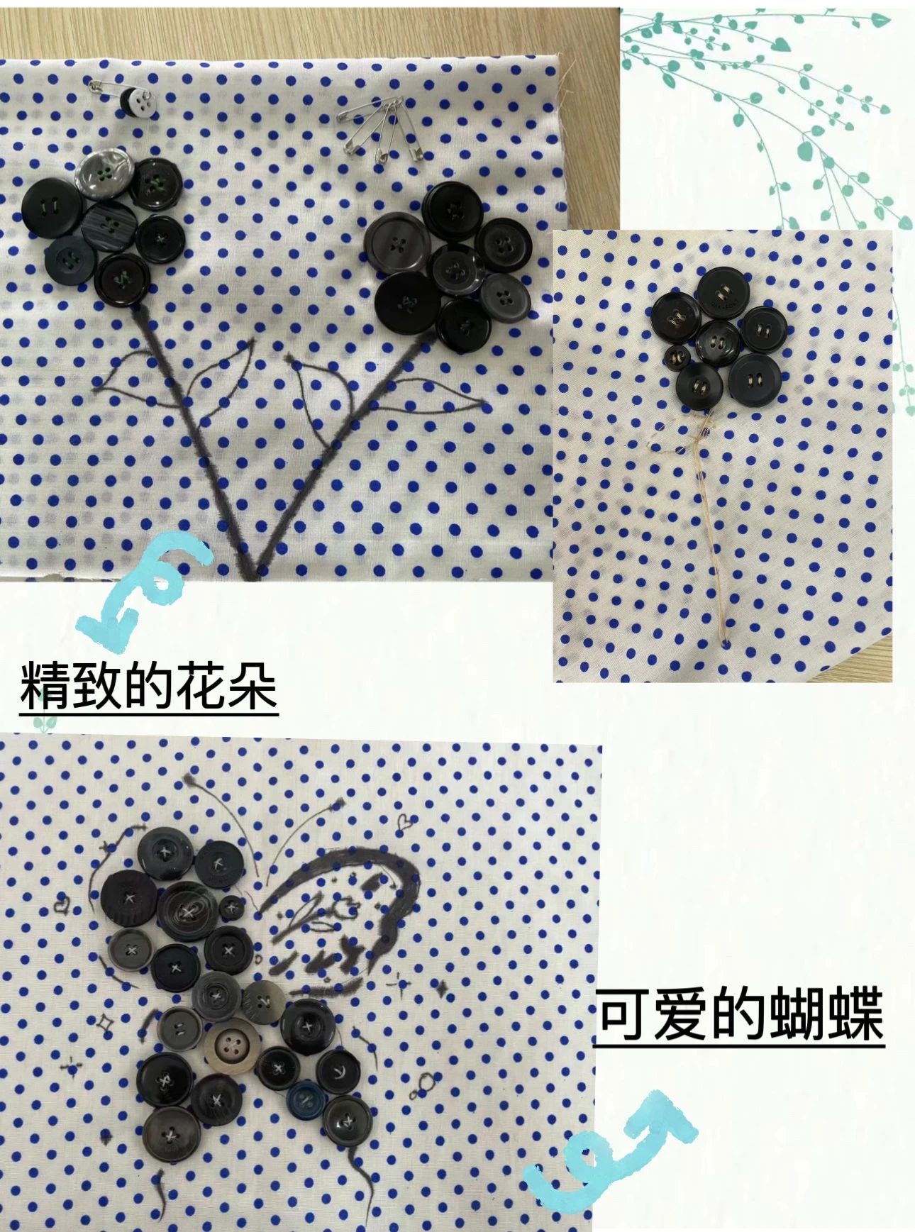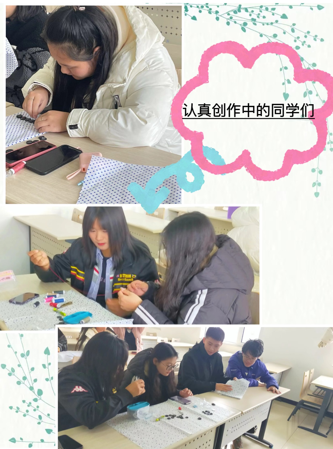 在第一环节作品创作中,同学们集思广益、脑洞迸发,在一针一线精心的交织中,充分体现了现代服务系学子心灵手巧的靓丽风采。