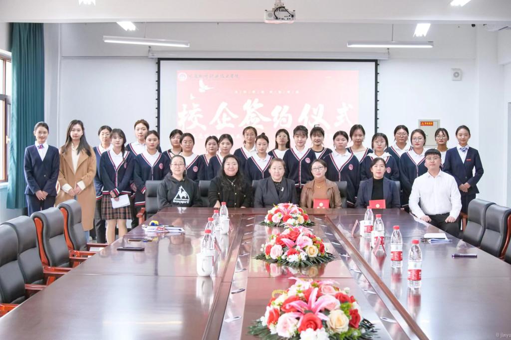为培养托育人才,搭建园校沟通、交流平台,大连枫叶职业技术学院与壹迪(大连)托育有限公司进行深度合作,以提高现代服务系婴幼儿托育服务与管理专业的建设水平,11月8日下午1点30分,首先对各位领导的到来表示谢意,在大连枫叶职业技术学院4号教学楼六楼会议室举行了校企签约仪式。本次仪式由22幼儿管理2班的洪孟思源主持,企业代表有:李虹霏园长、蔡晓瑶园长,校方代表有:学院院长助理张冬冬,现代服务系党支部书记、系主任闫博、教学管理副主任蔡丽丽、幼师专业负责人郭东生、教学管理实习教师马佳怡、幼师团队教师以及学生代表共同参加了本次校企签约仪式。