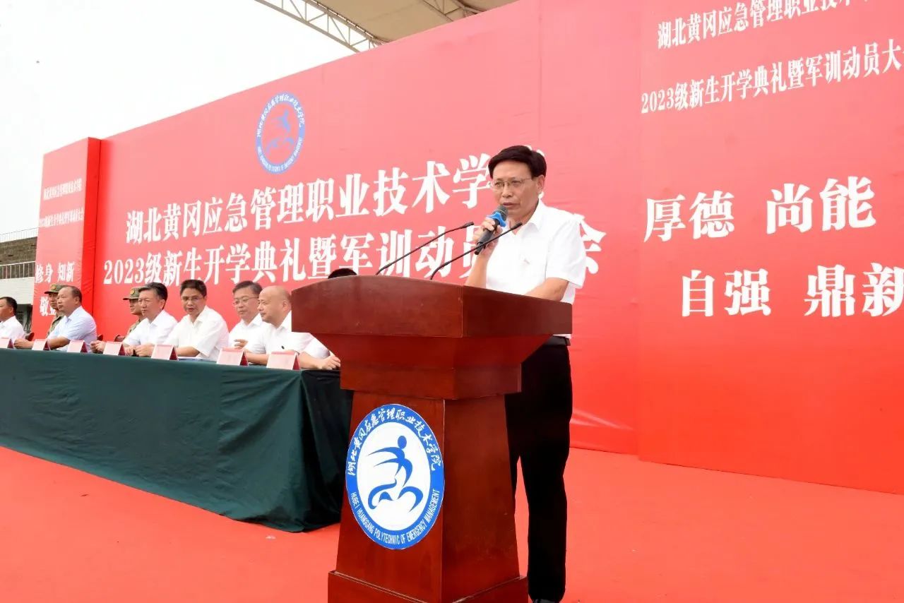 在湖北黄冈应急管理职业技术学院举行的2023级新生开学典礼暨军训动员大会上,校长邹功平在致辞中提到“相信学习的力量”。