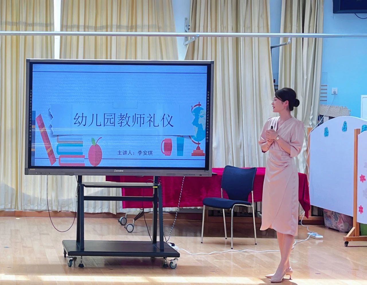为加强教师队伍对文明礼仪的重视,全面提升教师礼仪素养,帮助教师塑造个人形象,6月27日下午1:00,现代服务系空中乘务教师李安琪受邀前去大连市甘井子区教育局融创幼儿园,为在职幼儿教师进行了“教师礼仪专题培训”活动。