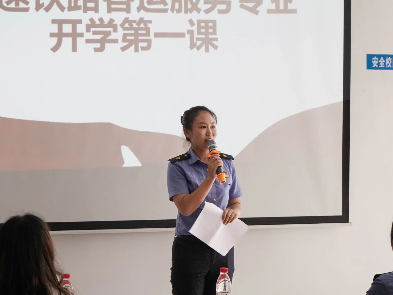 为深入学习贯彻党的二十大精神,大力弘扬劳模精神、劳动精神、工匠精神,充分发挥劳模工匠的引领示范作用,树立正确的劳动价值观,倡导劳动最光荣的社会风尚和精益求精的敬业风气,引导教育学生成为“有理想、肯担当、能吃苦、勤奋斗的新时代好青年”,9月7日上午9:00,大连枫叶职业技术学院邀请到大连站馨驰半岛服务团队成员、全国五一劳动奖章获得者刘伟为高速铁路客运服务专业学生进行“高铁先锋进校园,工匠精神注心间”的主题宣讲活动。本次活动由22高铁1班管小庆和22空乘1班高铭辰主持。