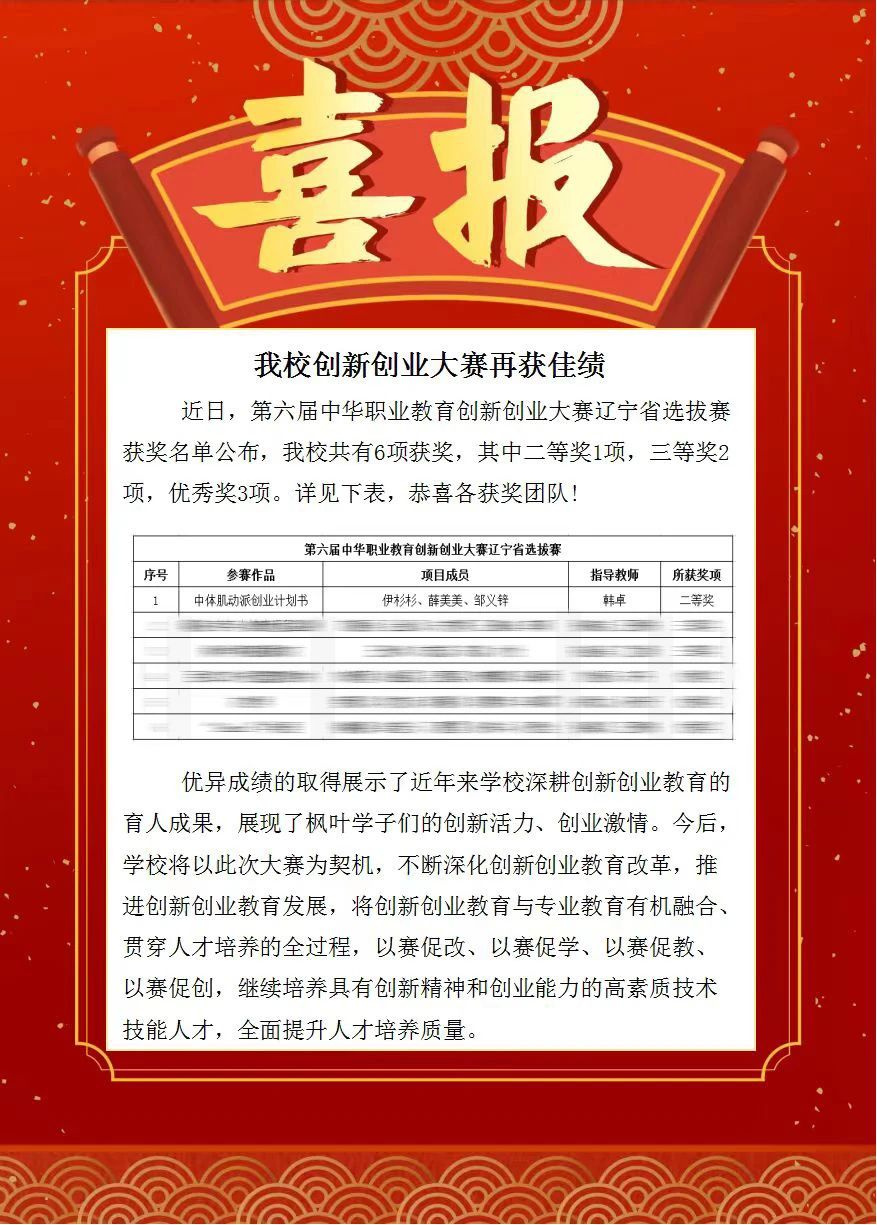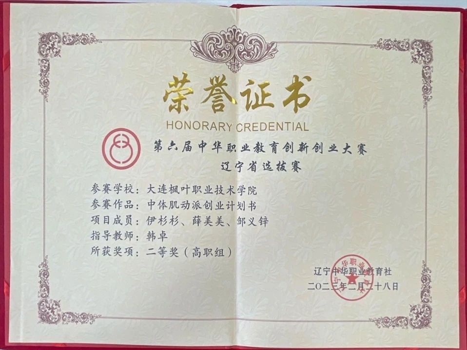 经赛事专家组评审、赛事组织委员会审定,现代服务系社体专业师生作品“中体肌动派创业计划书”获得辽宁省二等奖。