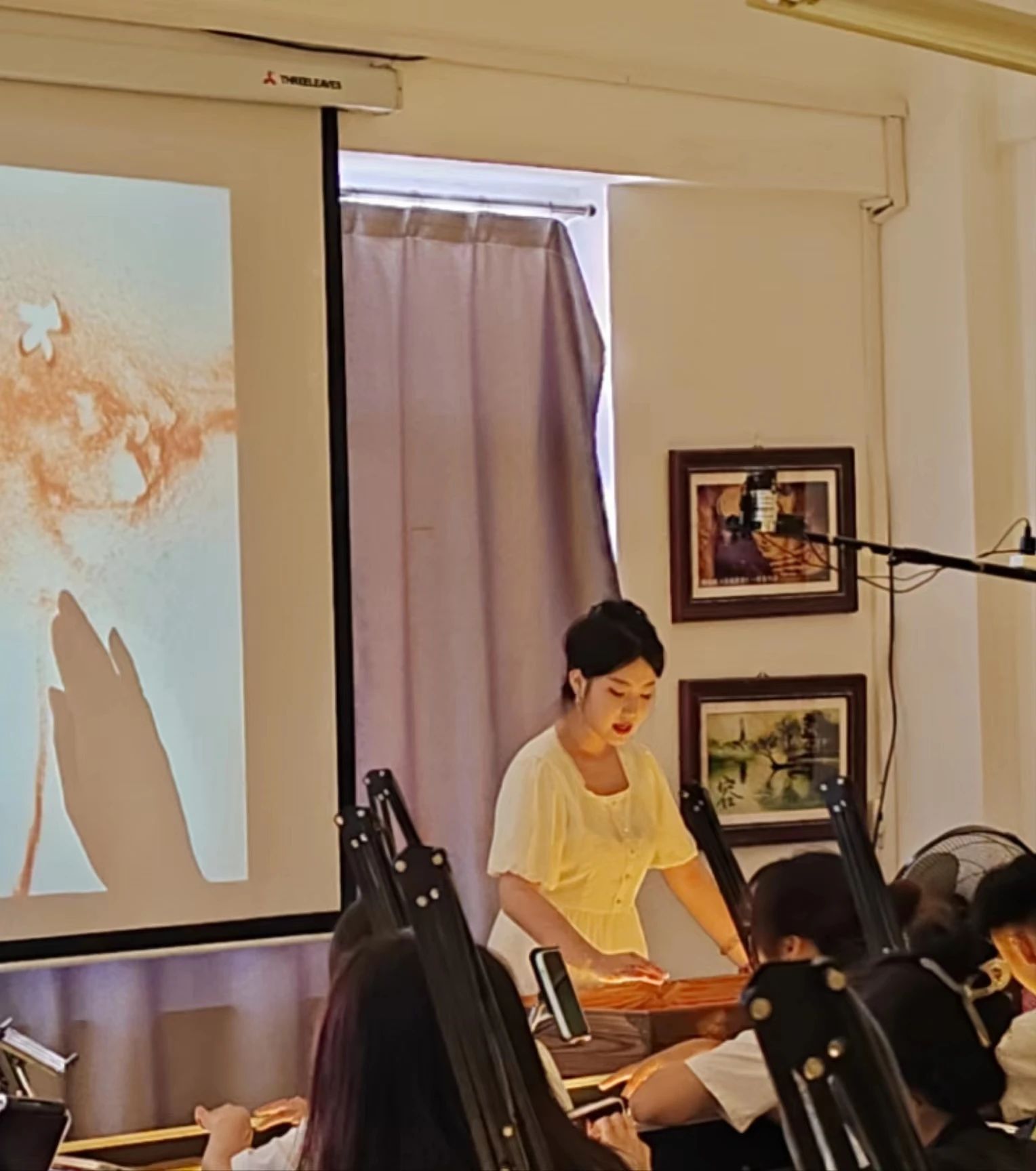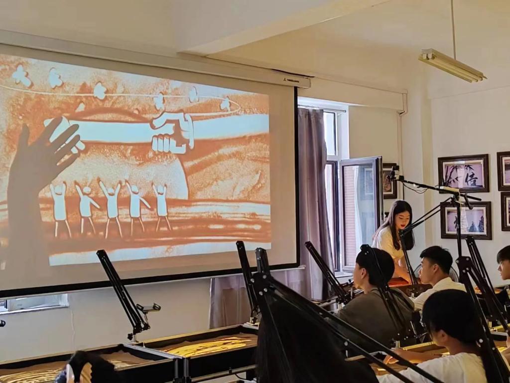 沙画是近年刚刚兴起的一种与舞台艺术相结合的表演形式,融中国画的渲染、油画的厚重等精髓于一体并将绘画、音乐与光效结合,给人们带来全方位的视听享受,既具有东方的神韵,又呈现出现代风采。我校为了提升学生综合素质,开设大美育教育,增强学生的艺术感知能力,使学生最大可能的接触多样的艺术形式。
