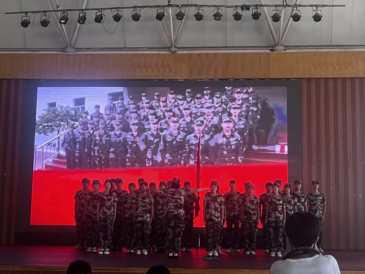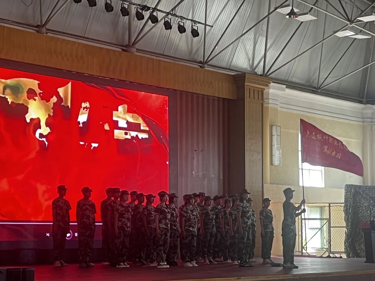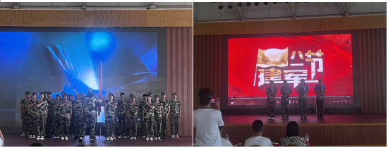 为庆祝八一建军节的到来,学院于8月1日上午10:00在综合馆三楼组织了庆八一军歌合唱比赛活动,现代服务系派出军训九班为代表参与了本次比赛。