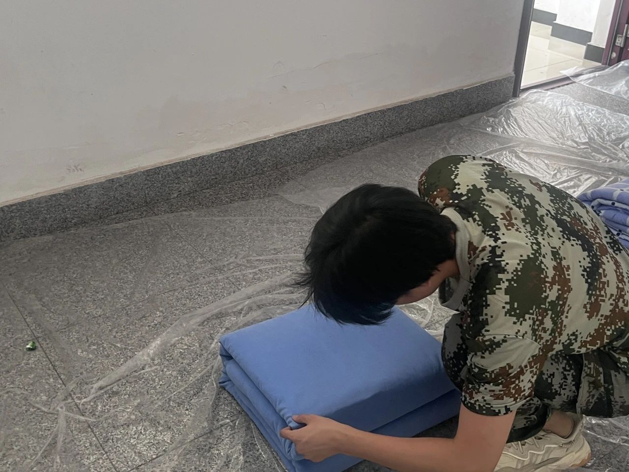 教官亲自走访寝室,同学们在整理中的不足,教官也做出了示范。尤其是床铺整理的标准和技巧,教官给予了耐心的指导和示范,同学们也在指导过程中学到了标准方法。通过教官的示范,同学们能够更加深入地了解到寝室整理的标准和要求,更好地完成内务整理任务。