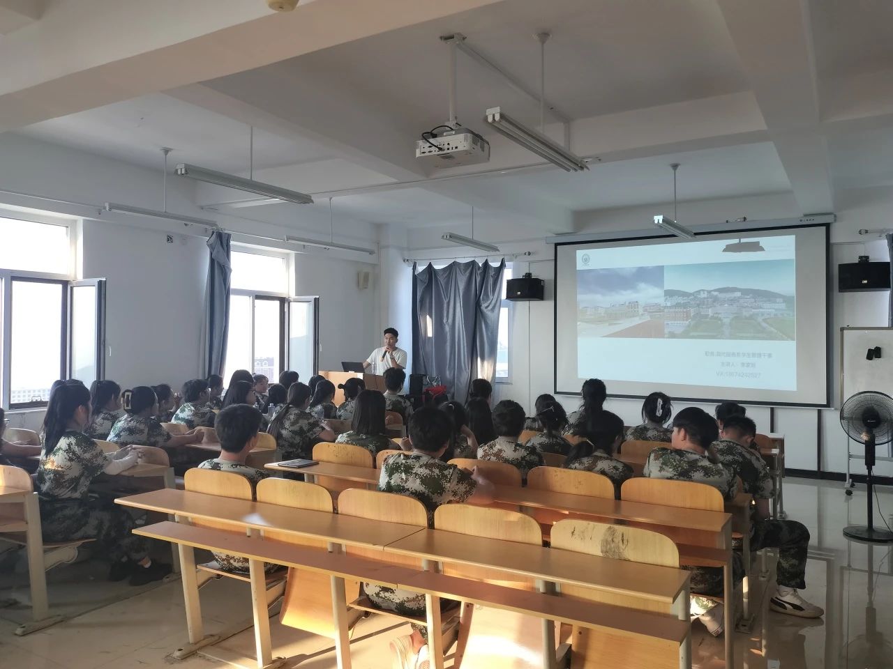 7月19日下午18:00,现代服务系学生管理干事李家旭在3号教学楼517教室为同学们讲解了“寝室文明与安全”,学生寝室是学生休息的主要场所,也是反映大学生精神文明和礼仪修养的关键窗口。李老师告诉同学们,创建文明、和谐、整洁的宿舍环境是我们共同的责任。