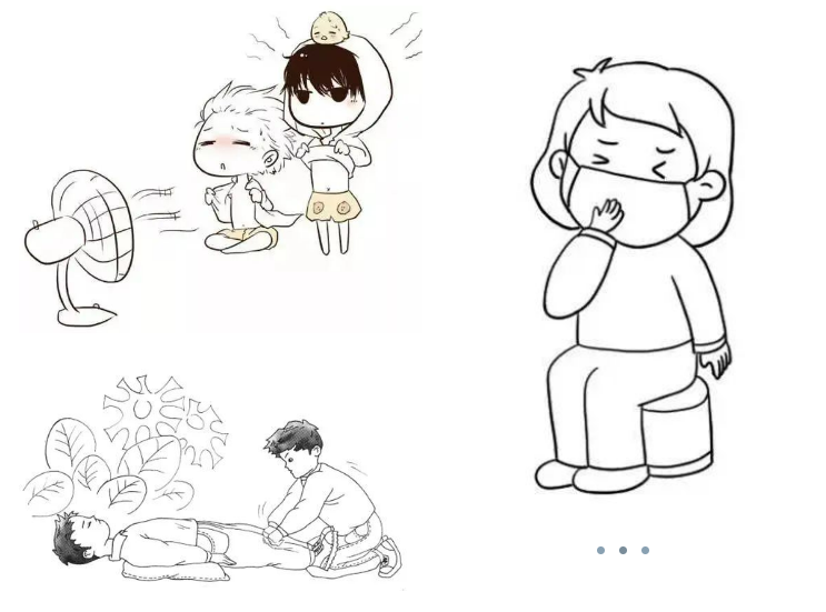 急救及治疗:首先把病人抬到通风阴凉地方,解开衣扣,平卧,用冷毛巾敷头部,喝适量淡盐水或凉茶(饮料)补液降渴。轻者可服人丹、十滴水,霍香正气水(液)或霍香正气胶囊,严重者要及时送医院采取急救措施。