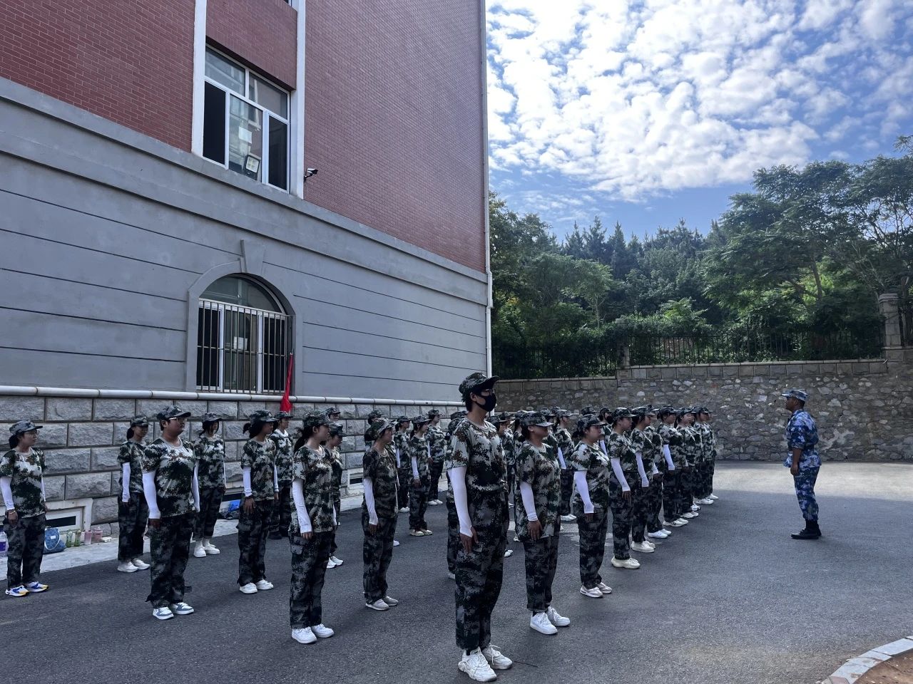 军训第二天,各班学生跟随各自的教官开始投身于训练。在教官的带领下,同学们学习了站军姿、列队形等训练项目。天气炎热,虽然辛苦,但收获满满。