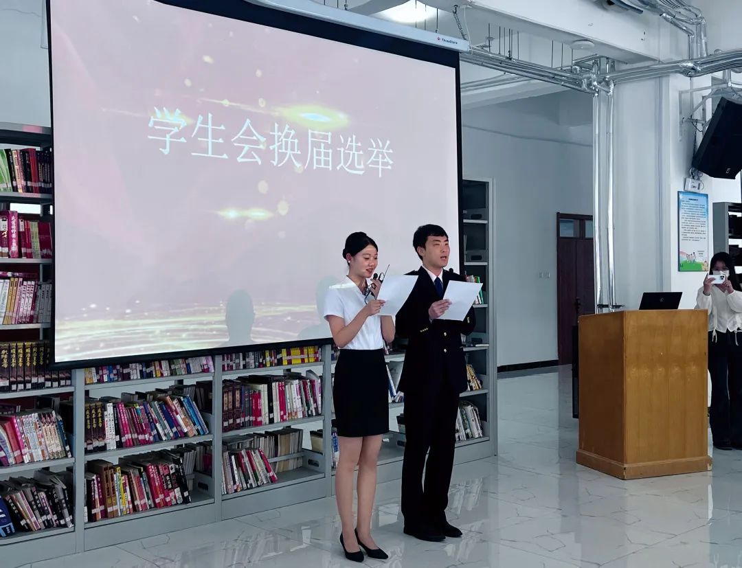 为更好服务全系学生发展,赓续传承青春力量,2023年5月30日下午2点30分,现代服务系学生会换届选举大会于图书馆二楼顺利举行。本次大会由现代服务系主任闫博、现代服务系学生管理副主任鲁广豪、现代服务系团委书记张雪巍、现代服务系党支部组织委员柴春颖、现代服务系教师王晨、孙雨琴、现代服务系学生管理干事李家旭、董海、鲁家军出席并担任评委;由21高铁2班张淼、21空乘1班张佳乐主持。