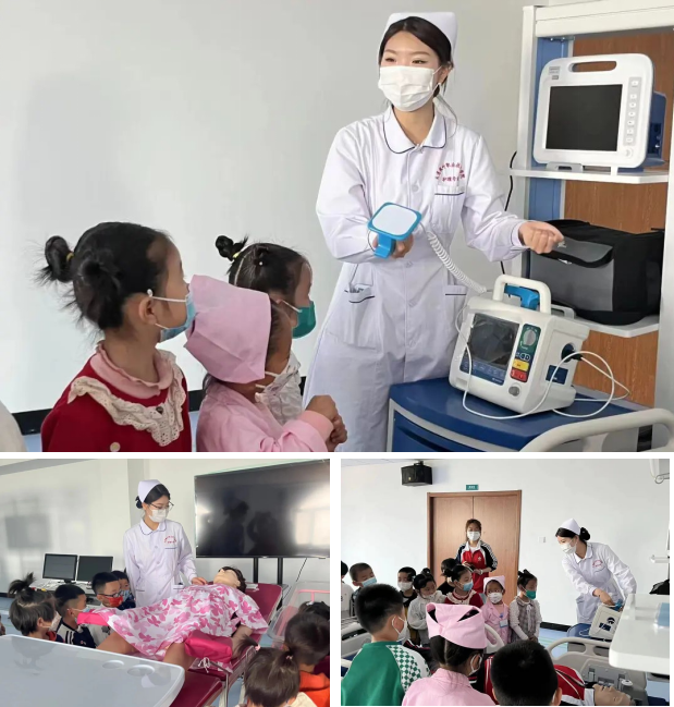 护士小姐姐带小朋友们参观了医疗设备并讲述了使用方法。