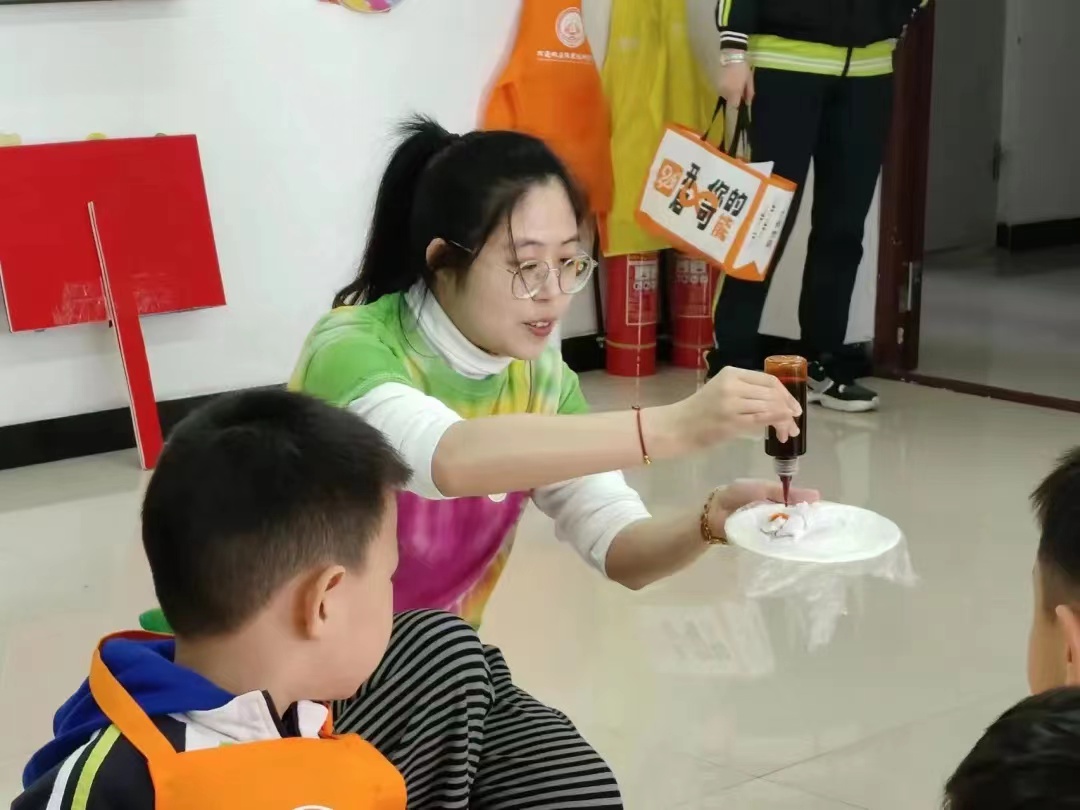 “扎”一束童年,“染”一抹快乐,老师准备了小手绢和色彩斑斓的染料,带孩子们扎染。使小朋友们在优秀的传统文化里,浸润、滋养……感受优秀传统文化的独特魅力。