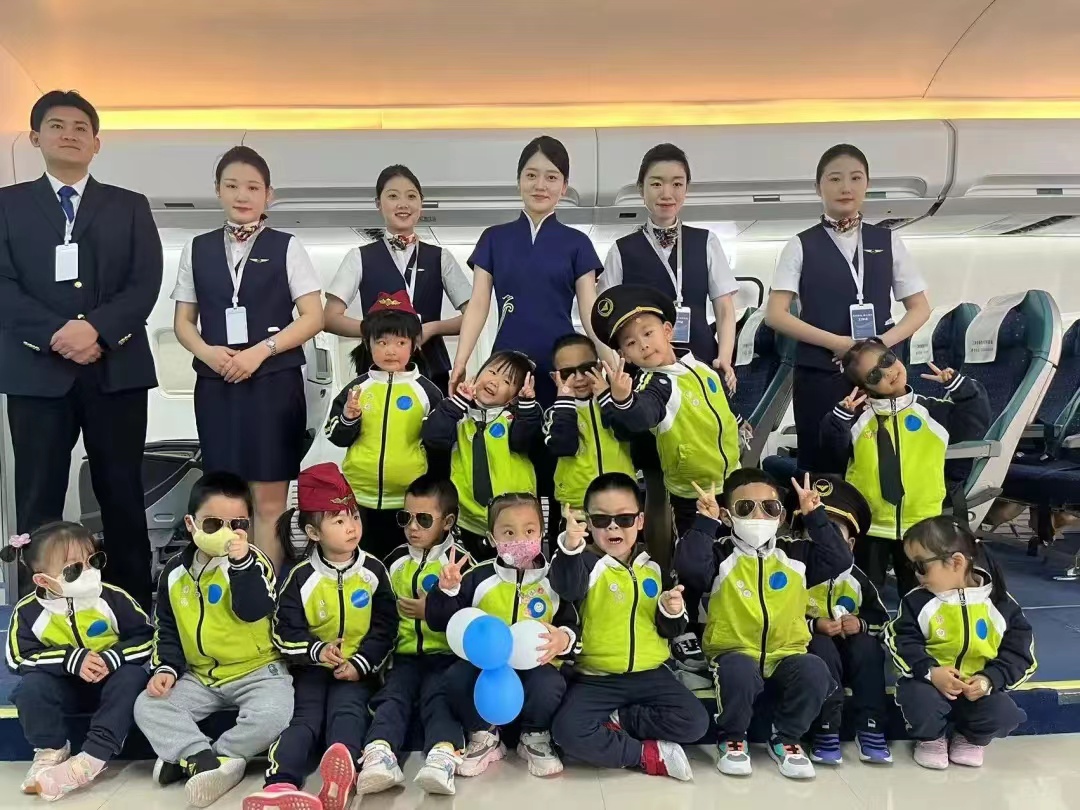 小朋友们走进航空模拟仓,感受由现代服务系空中乘务专业师生带来的奇妙航空之旅,在其中感受航空职业的魅力,同时也让学院空中乘务专业的学生上了一堂生动的实训课。