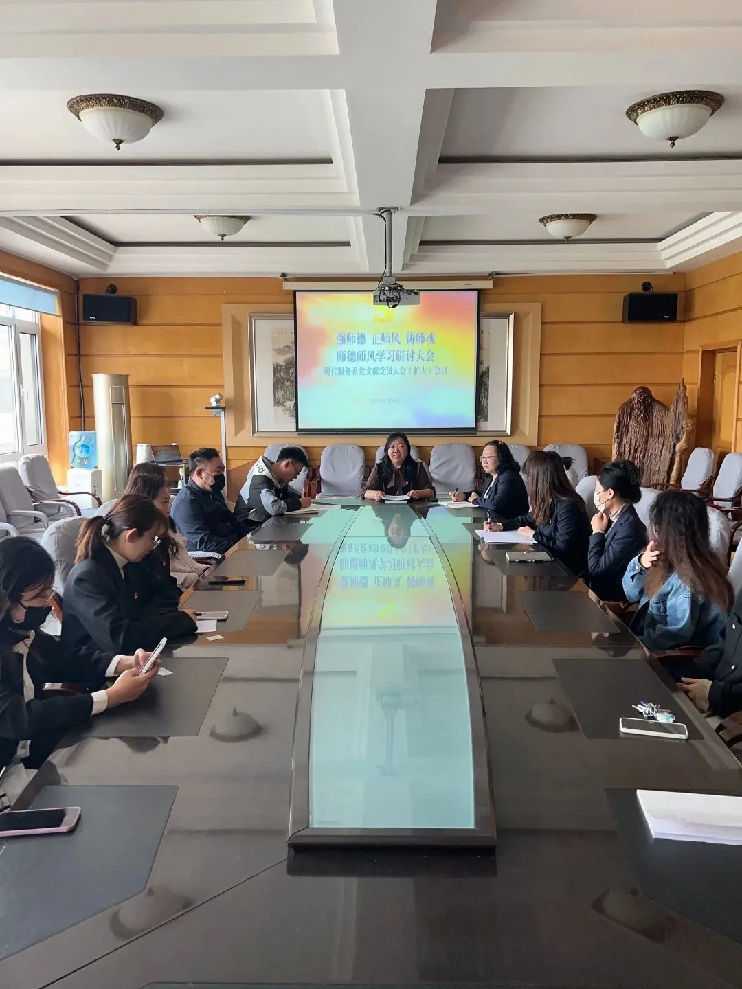 立德树人,师德为先。为加强师德师风建设,引导广大教师涵养高尚师德,2023年4月20日现代服务系在会议室召开了“强师德 正师风 铸师魂”师德师风学习研讨大会。