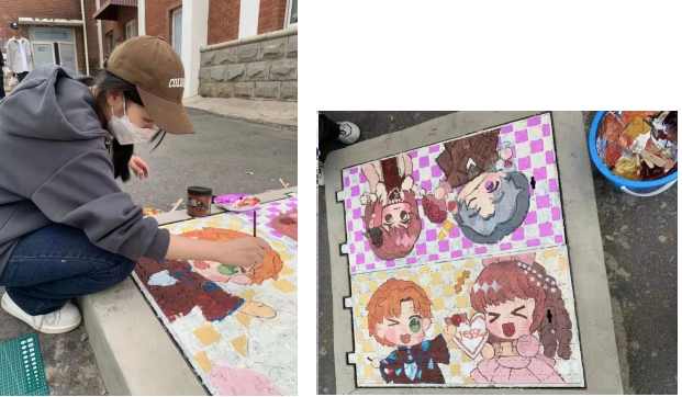 为丰富学子的课余生活,活跃校园文化氛围,激发同学们的想象力和创造力,发挥美育育人实效。由学院总务处主办的“我的校园我来创‘井’上添花”活动,得到了枫叶学子们的积极响应,大家纷纷报名。现代服务系学子们积极参与,为井盖“披”上新衣。让我们来欣赏一下吧~