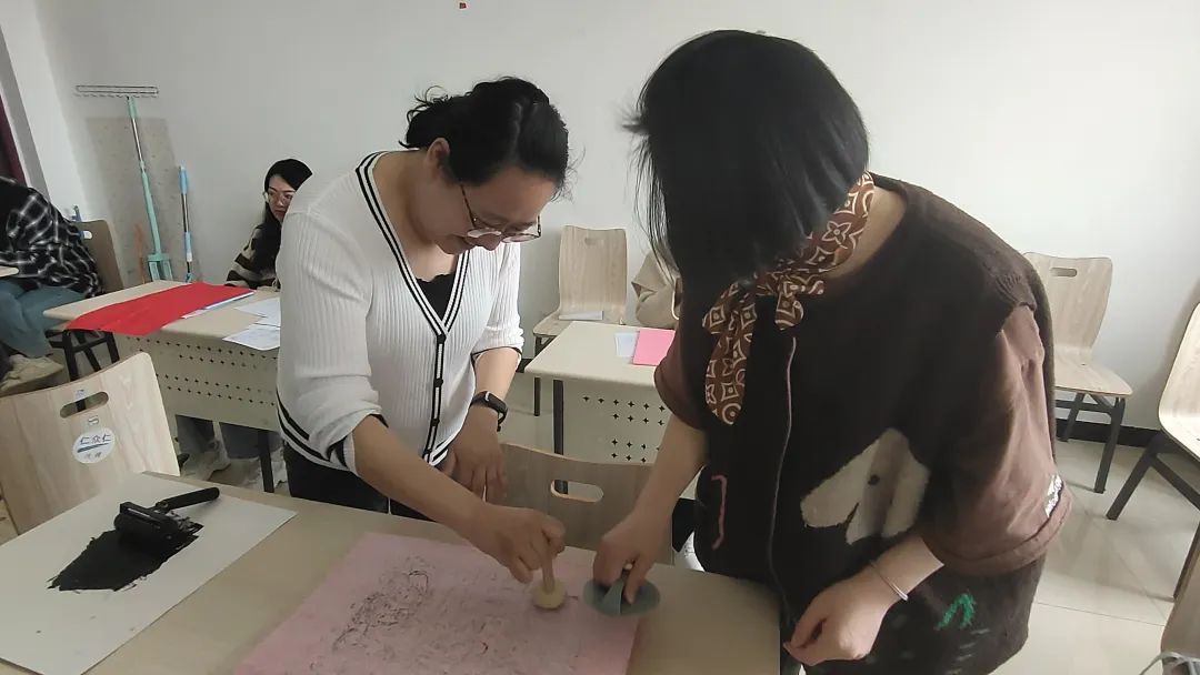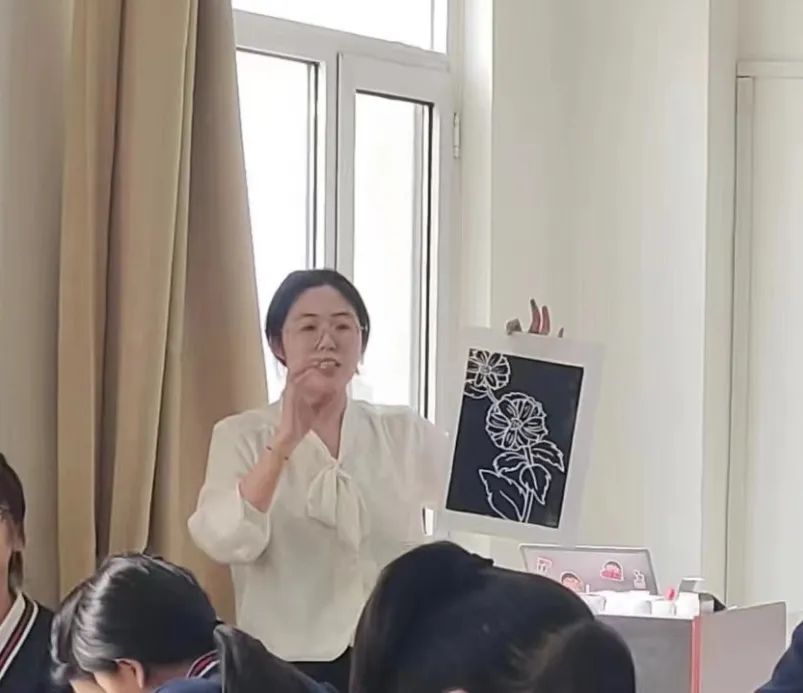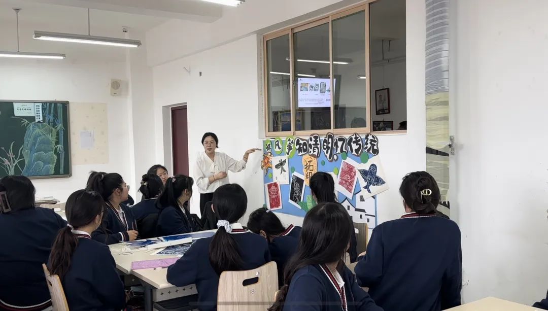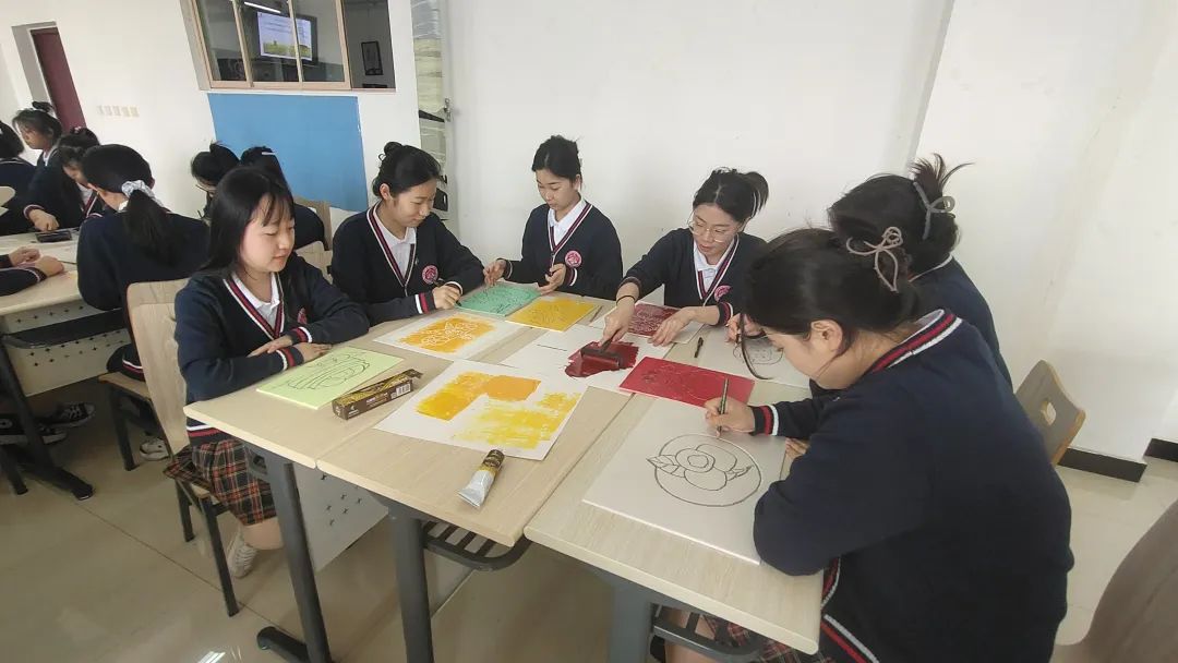 杨澜老师组织同学们观看视频《版画的发展》并将吹塑纸版画制作带入课堂,让学生亲身体验。