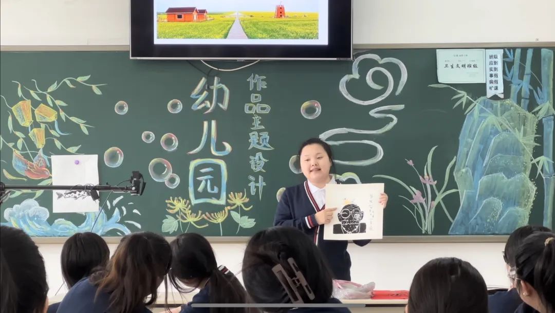 杨澜老师将清明传统节日与幼儿园环境创设的主题墙活动设计相结合,并且融入了版画的技法,讲述清明小故事,在这个过程中,作为未来的幼儿老师,同学们要知道传统节日在幼儿思政领域所具有的支撑作用是比较突出的,可以引领和启发幼儿形成正确的思想观、文化观。也能够促使其在感受节日内涵和体验相关习俗活动的过程中,形成良好的道德认知,建立优秀的品质素养。