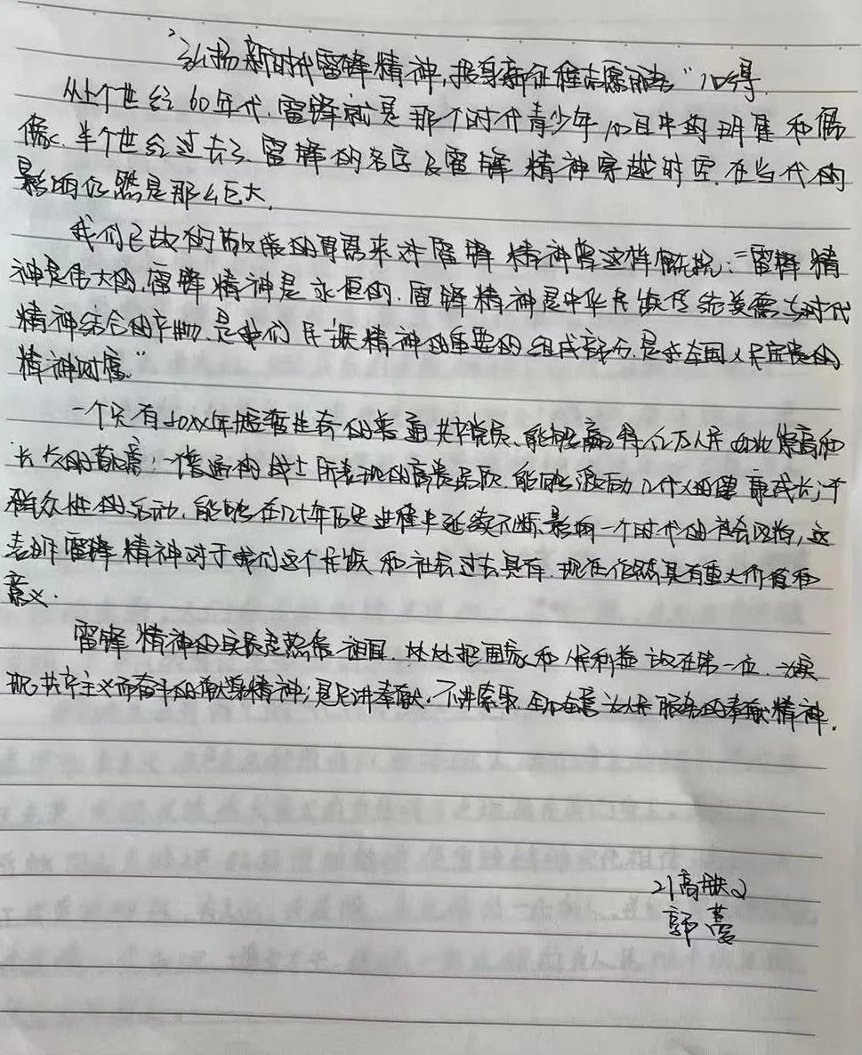 雷锋是一个时代的楷模,雷锋精神又是永恒的。它是五千年优秀中华文化和红色革命文化的结合。实现中华民族伟大复兴要不断闯关夺隘,也需要更多的时代楷模。积小善为大善,善莫大焉,这和我们党“为人民服务”、“做人民勤务员”是一脉相承的。我们要学习雷锋精神,把崇高的理想信念和道德品质追求融入日常生活中,将雷锋精神代代传承下去。