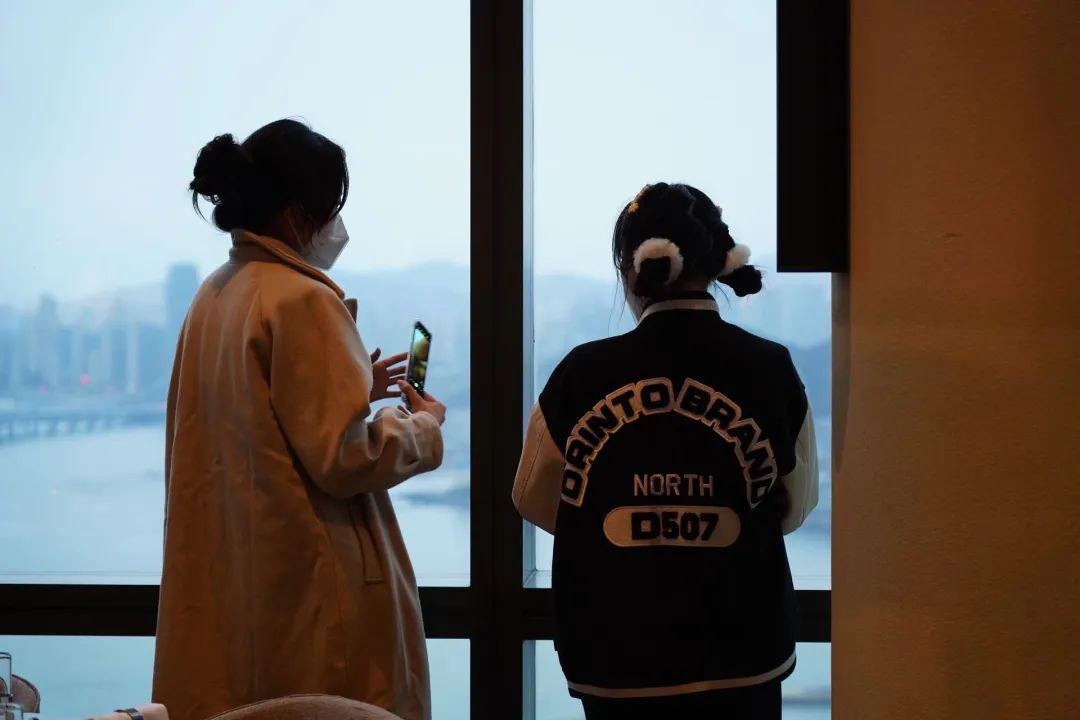 吃完下午茶后,在君悦酒店的工作人员的带领下,同学们参观了客房、中餐厅等,然后来到了君悦酒店美丽的观景台,同学们站在观景台上看到了美丽的星海广场,之后同学们在君悦酒店遇到了已经毕业的学姐,学姐分享了个人的成长心得,表达了对母校的感激之情,并向学弟学妹们提出了真诚建议。