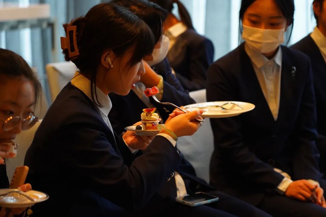 午餐之后,同学们来到了大连君悦酒店,人力资源部经理对同学们的到来表示热烈的欢迎,并为同学们奉上了精美的下午茶,随后人力资源总监向大家介绍了君悦酒店及其企业文化,并就大家提出的关于酒店工作所需的准备、酒店升职、薪酬福利、管培生等问题进行详尽的回答。他还通过详实的数据和自身的经历告诉大家,酒店业是一个充满活力与前景的行业,真正喜爱这个行业的人,应该在年轻的时候多历练、多思考。比别人多吃一点苦,多留一点心,就有机会更早地走向更大的舞台。