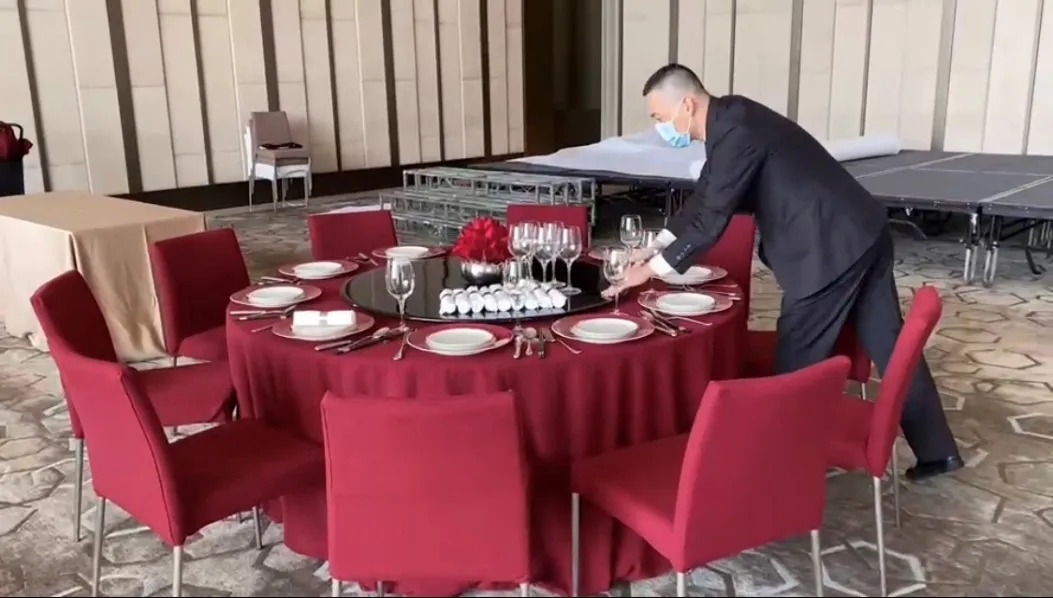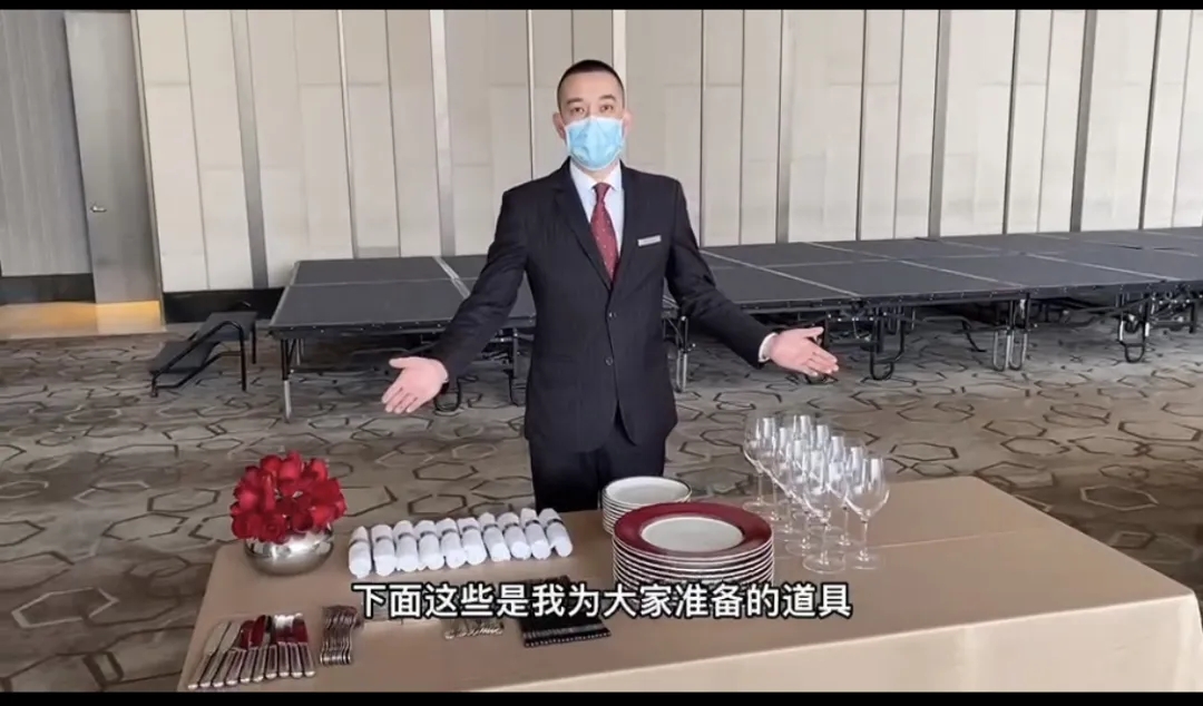 大连君悦酒店宴会部经理DAVID为我系带来的宴会服务演示内容,为参与辽宁省职业院校技能大赛的同学们在学校封闭管理的条件下进行了有效的参赛指导。