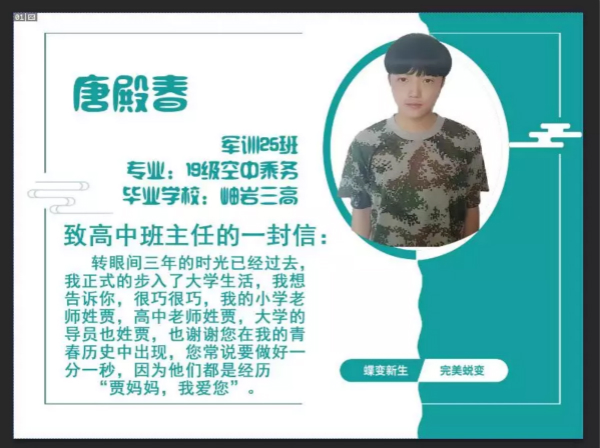 军训日程近半,在全体老师、教官、学长学姐的帮助下,初入大学的新生们已经有了一些本质上的蜕变,感恩,思念充斥在脑海。