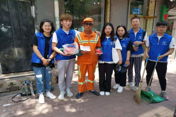 城市的整洁与美丽,离不开辛勤劳作的环卫工人。2019年6月5日,恰逢世界环境日,现代服务系青年志愿者协会发起了关爱环卫工人的公益活动。
