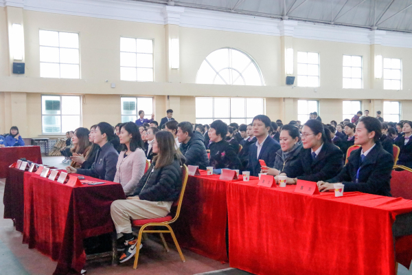 为了使文明的风尚更加深入人心,创建文明的高校校园,在学生中普及基本的礼仪知识,现代服务系海陆空乘务专业于2018年12月3日10时在综合馆开展了第三届现代乘务专业礼仪大赛,本次邀请的嘉宾有:大连枫叶职业技术学院党支部书记副院长申秀梅、北京中航铁服有限控股总经理张国锋、北京中航铁服有限控股主任季美辰、大连枫叶职业技术学院现代服务系主任于庆霞主任、大连枫叶职业技术学院现代服务系教学主任初金美、大连枫叶职业技术学院现代服务系管理主任闫博、大连枫叶职业技术学院创业办主任张晓洁;学院教务处科长王珊;担任此次的评委的有:中航铁服专业礼仪教师纪美辰主任,、现代乘务专业礼仪老师于海妮、现代乘务专业礼仪教师高静、学院招生办刘璐老师,创业就业办司宇老师。出席本次大赛的还有大连经贸学校校长张志伟、教务主任张晶、专业科长汪玉洁等6名老师,同时观赛的还有海陆空乘务专业全体任课教师、辅导员、企业驻校教师和全体海陆空乘务在校生。