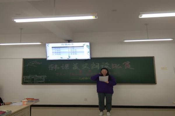 2018年11月27日,第一届韩语美文朗读大赛在现代服务系5楼如期举办。本次比赛邀请应用韩语专业于翔翔、刘瑜津、董悦3位教师以及17级应用韩语专业的学长姐担任评委。