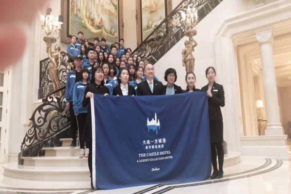 2018年11月20日,2018级酒店管理专业43名同学在酒店管理专业刘小宇老师和辅导员温雅老师的带领下,前往大连一方城堡豪华精选酒店,参加由万礼豪程基金会所组织的酒店参观认知实践活动。