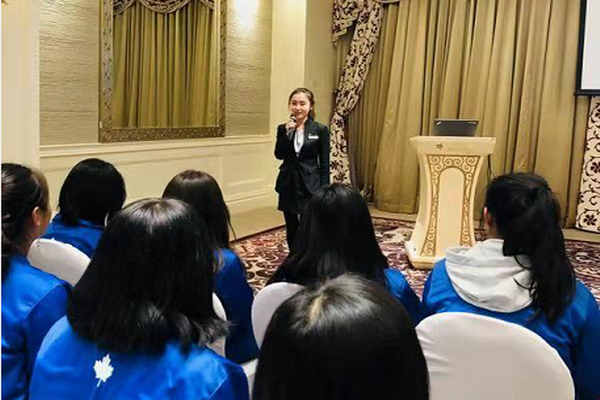 下午13:00,同学们抵达城堡酒店宴会厅,人力资源部经理Orpah Ding 为同学们举行了欢迎会。在欢迎会上,首先由城堡酒店的GM陈隆庆先生对同学们表示欢迎,期望同学们在酒店业能有更好的发展。业主方代表张总及酒店管理专业刘小宇老师分别进行了简单地心得交流并给予一些参观建议。最后,由人力资源部经理Orpah Ding 为同学们详细介绍了万豪集团及旗下“豪华精选”品牌的核心理念,让同学们对“豪华精选”品牌有了进一步的了解。