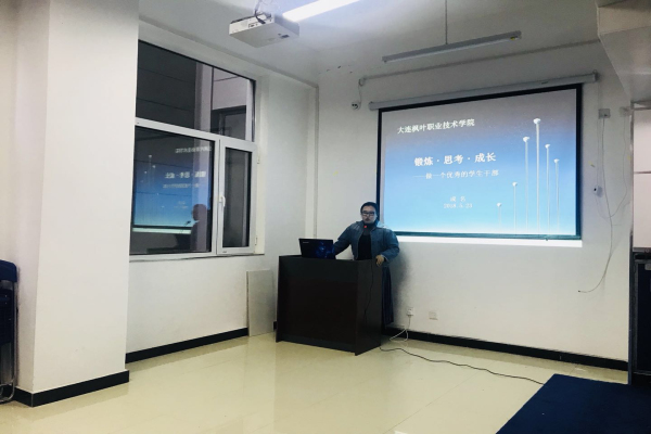 为了提高新一批学生干部的综合素质能力,2018年5月23日,现代服务系全体学生干部在三号楼航空实训仓进行学生干部培训,此次大会很荣幸请到大连枫叶职业技术学院团委书记成名担任主讲。