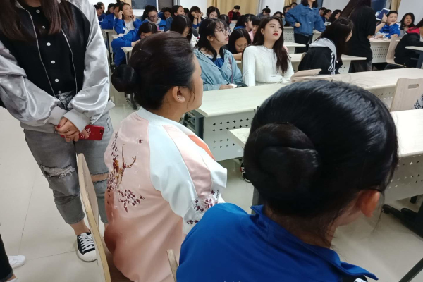 2018年5月10日星期四下午6点40分至八点,大连枫叶职业技术学院现代服务系国际邮轮乘务管理专业在现代服务系二楼多媒体教室利用自己的专业技能知识为海陆空以外的专业开展提供形象礼仪塑造服务和帮助分享职业装,职业礼仪。