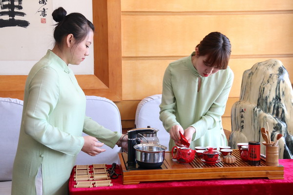 学生现场进行茶艺表演