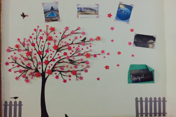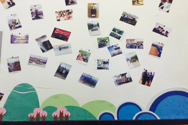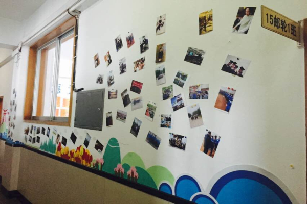 15邮轮的所有同学及班主任闫博老师在12月12日这一天汇聚一堂,共同装扮了他们的小家,缓解了紧张的学习压力。他们不仅收集了学哥学姐学习的轨迹,而且还用照片和图画的方式展现了邮轮班学子的风采,为走廊的墙壁添上新衣。