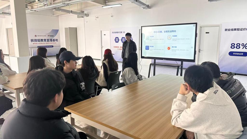 为深化产教融合校企合作,推动课堂教学与行业实战紧密接轨,切实提升学生就业核心竞争力,近日,智慧城市服务产业学院特邀我校深度合作的校办企业——枫微蜓未来科技(大连)有限公司(以下简称“枫微蜓”)的专业讲师团队入校,面向国际商务、市场营销、人力资源与管理、会计等专业学生,集中开展专项直播培训活动。