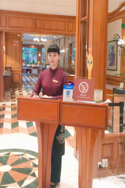 这次实习我来到了上海虹桥锦江大酒店,被分配到的岗位是咖啡厅的领位,工作可以说是简单,轻松,但是一旦做起来却又觉得有一些些的挑战。但是基于我在大一的时候就来酒店实习过,使我对酒店的基本业务和操作有了一定的了解,就我的工作来说,要敢于开口向人问好,在向人问好的过程中还要做到三到:口到,眼到,神到,一项都不能少。对于客人的要求,要尽全力去满足,尽管有些不是我职责范围的事情,也要尽力帮其转达;尽管有些要求不合理的不能办到,都要用委婉的语气拒绝,帮他寻求其他解决方法。