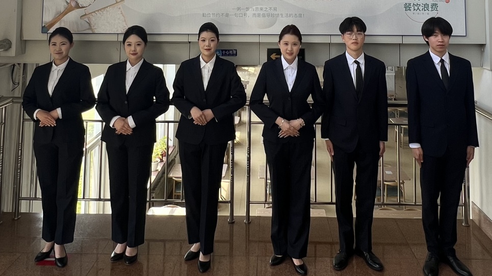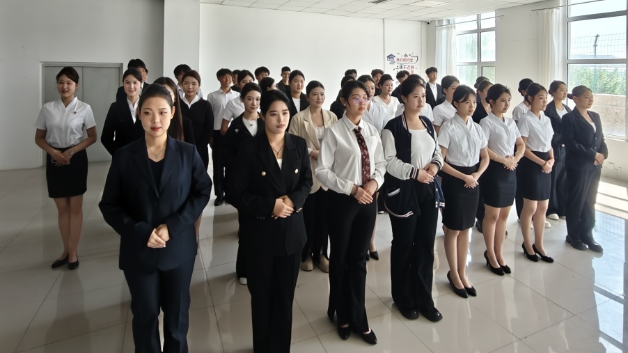 在仪态与服务礼仪培训方面,重点聚焦于站姿、引领、倒水以及摆桌面物品等实用技能。在站姿训练中,要求成员们抬头挺胸,收腹提臀,双肩放松且保持水平,双脚微微分开呈 “V” 字形或 “丁” 字形,展现出优雅自信的气质。引领礼仪培训时,成员们学习了如何用规范的手势和步伐引导宾客,保持合适的距离和角度,同时面带微笑,给予宾客热情周到的感受。倒水礼仪也有严格规范,从持壶姿势、倒水角度到水量控制,都进行了反复练习,确保动作流畅、稳当,不洒不漏。摆桌面物品同样有章可循,依据不同场合和用途,合理摆放餐具、茶具及其他相关物品,注重整齐美观与实用性的结合。